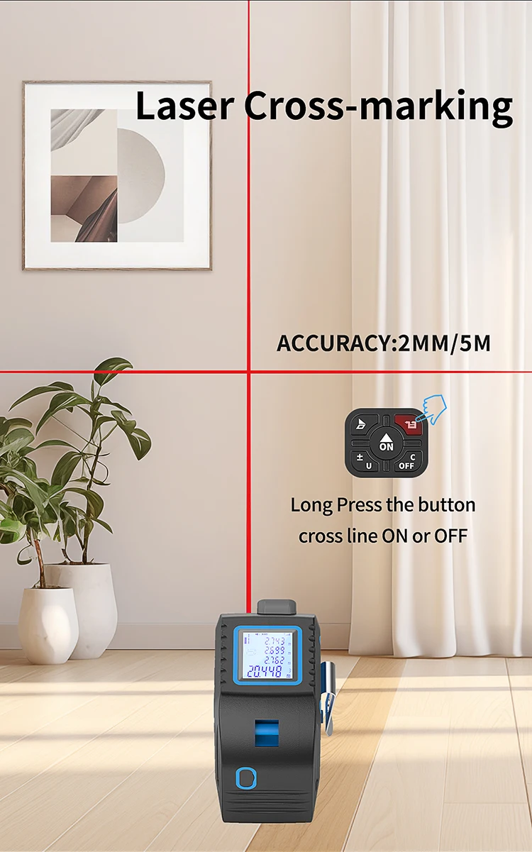 5M Tape + 60M Laser Digital Measuring Tape – Multi-Function Precision Measuring Tool with LCD Display & Cross Laser Emitter 100 sales
